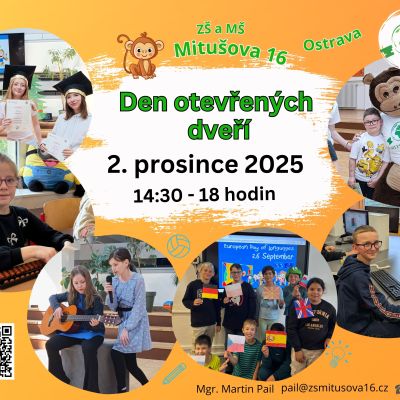 Srdečně zveme všechny rodiče a jejich děti na Den otevřených dveří 2. prosince 2025 od 14:30-18 hodin.