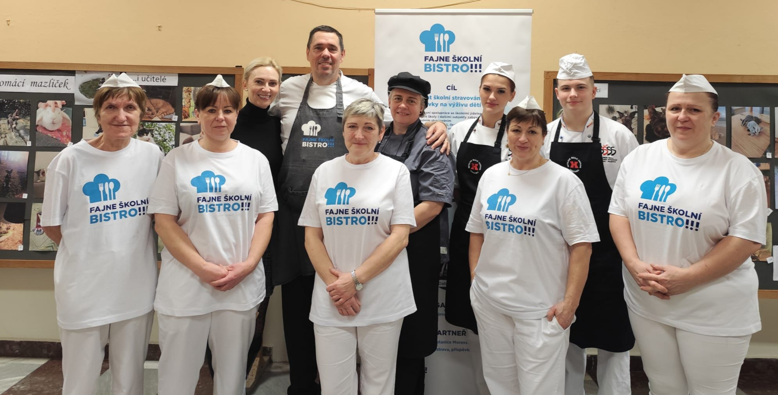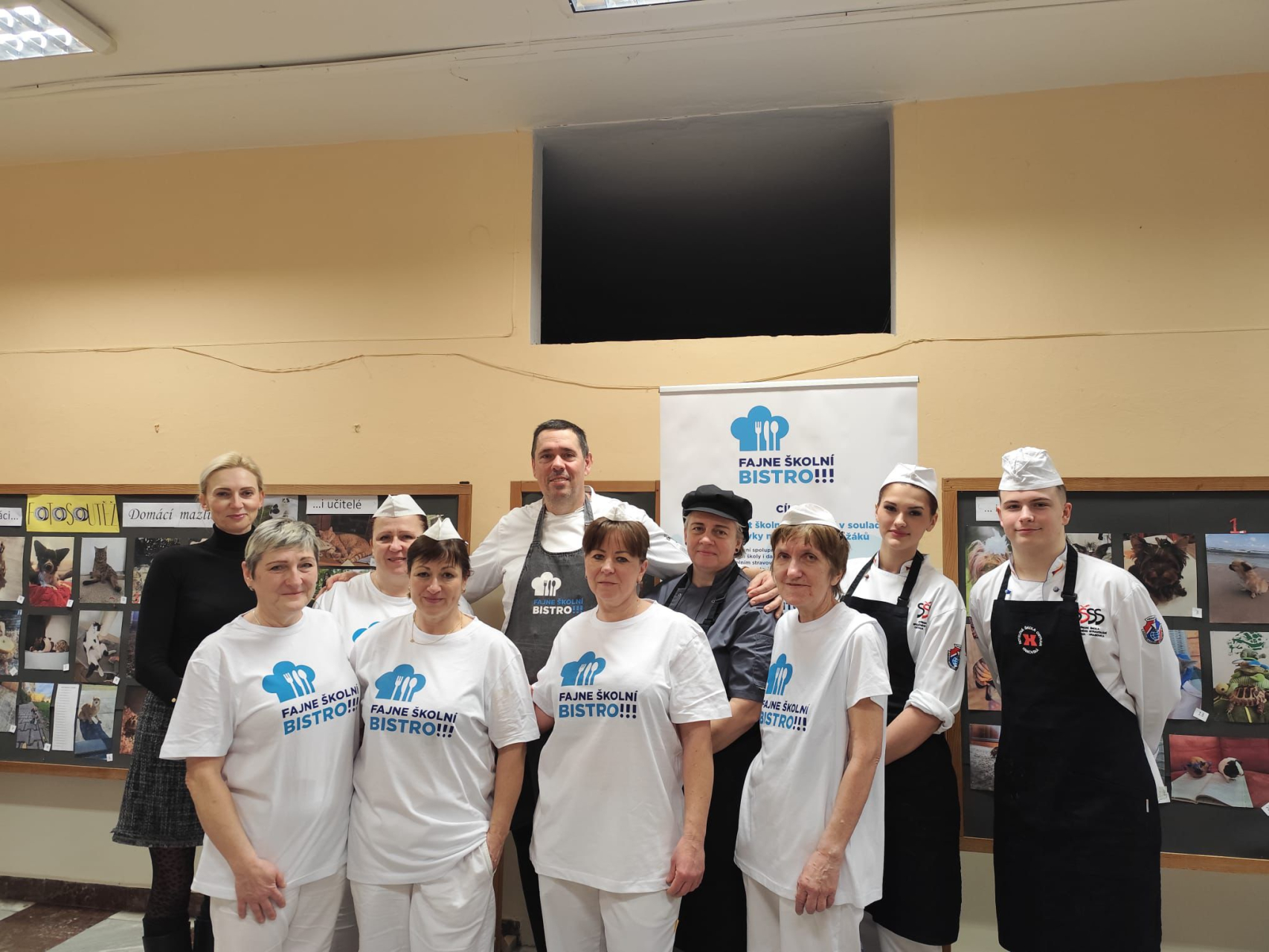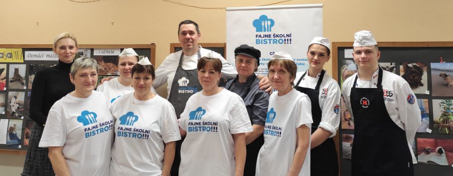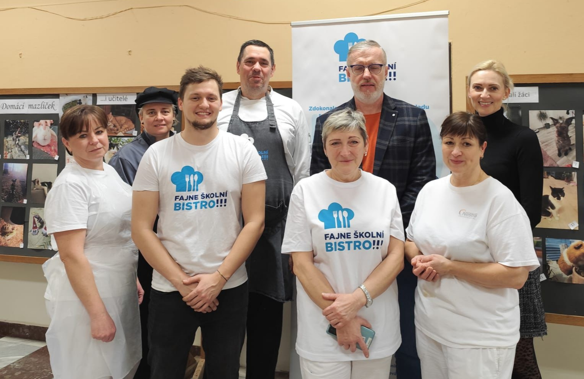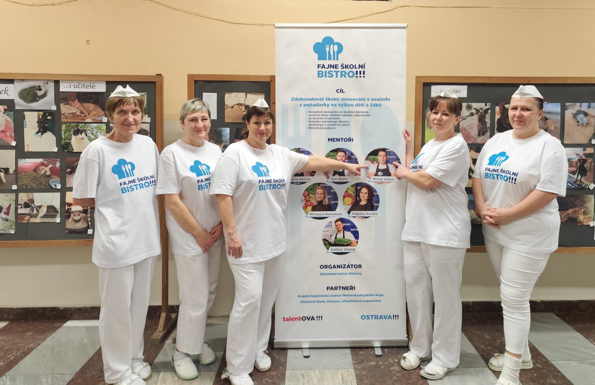 V rámci projektu Fajne školní bistro realizované Magistrátem města Ostravy se naše paní kuchařky zúčastnily mentoringu pod vedením týmu profesionálů v čele s kuchařem Michalem Adamem a s pomocí studentů Hotelové školy, Ostrava.