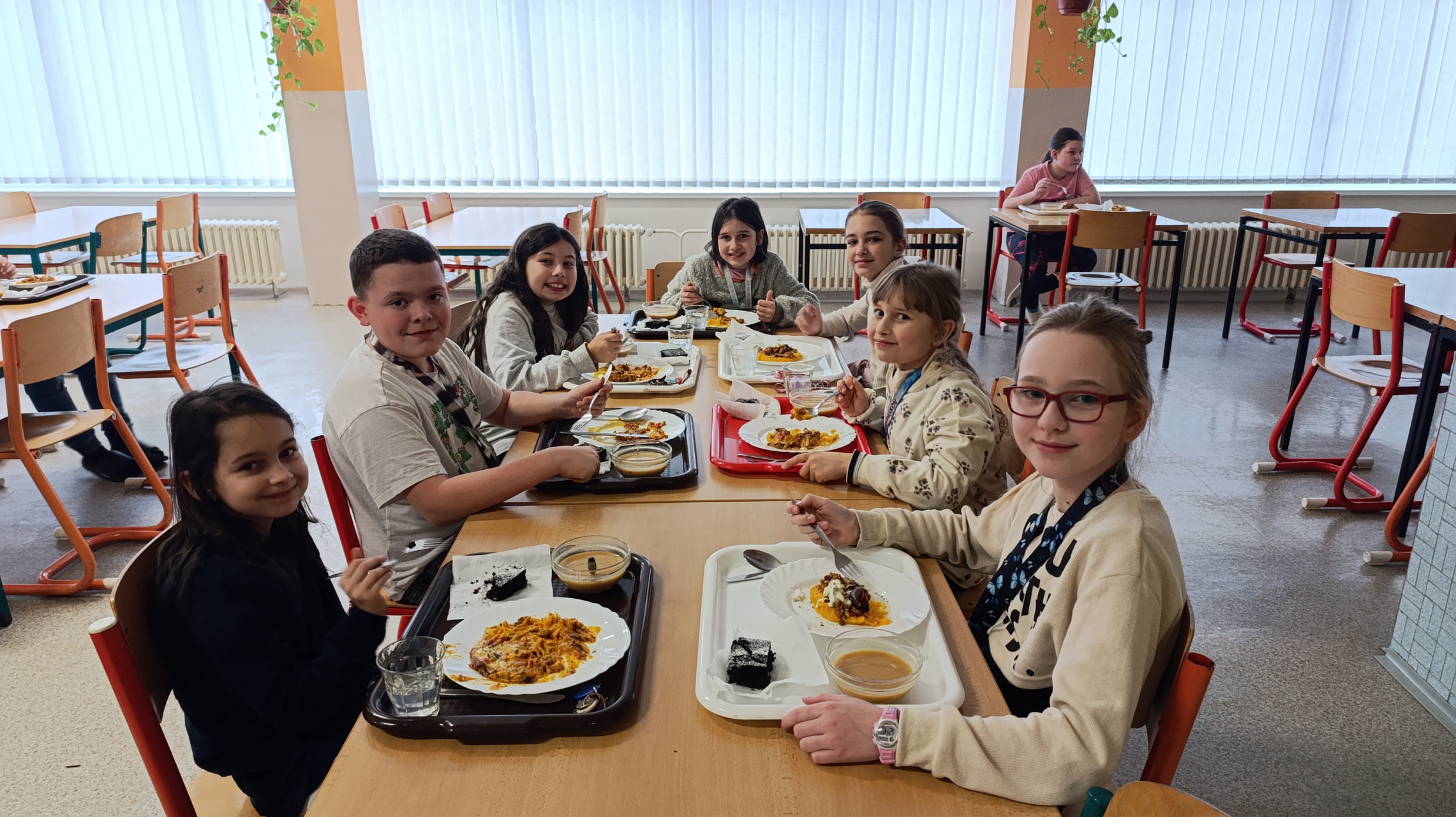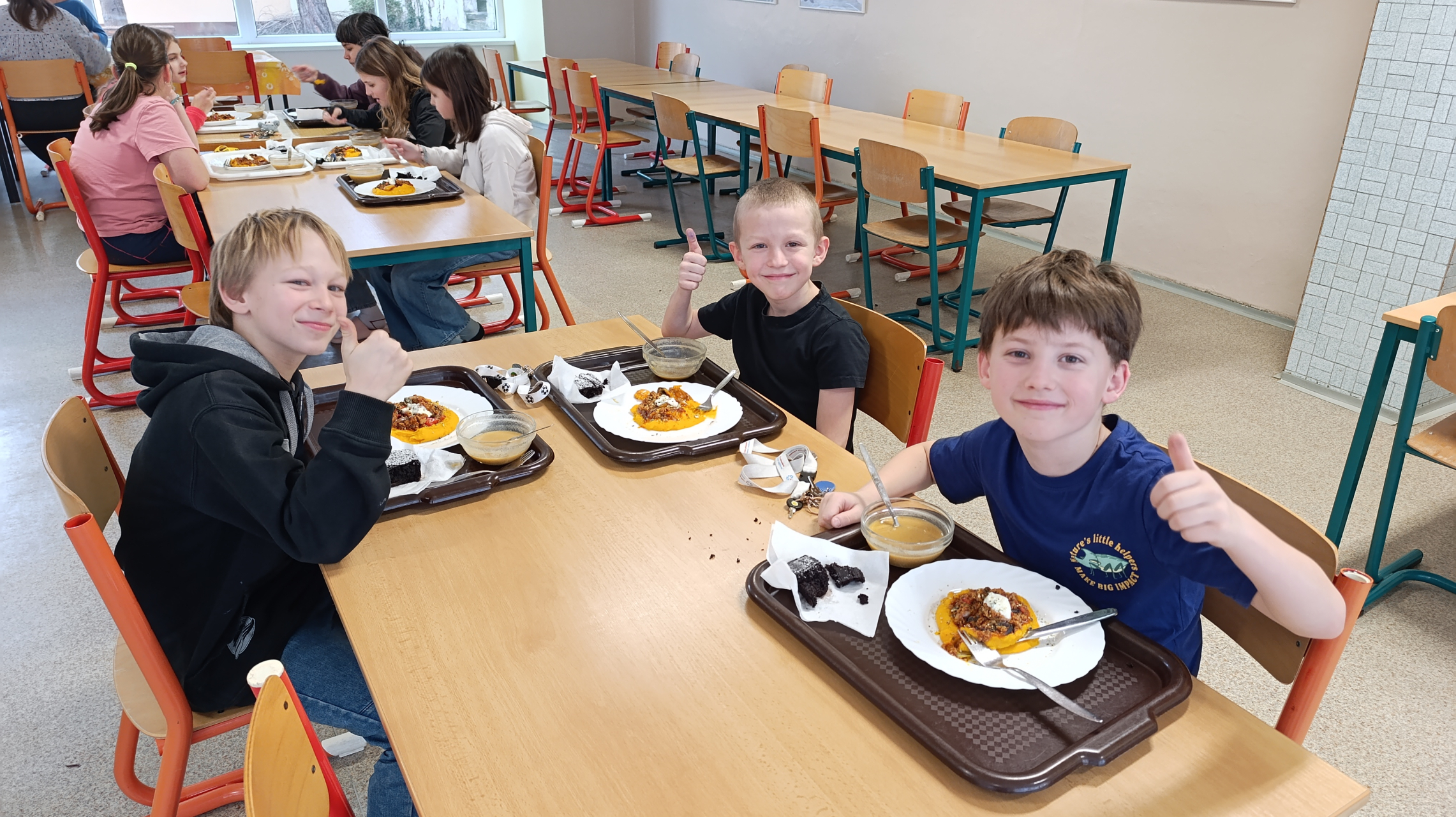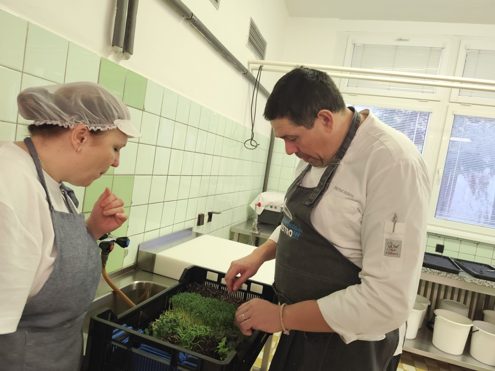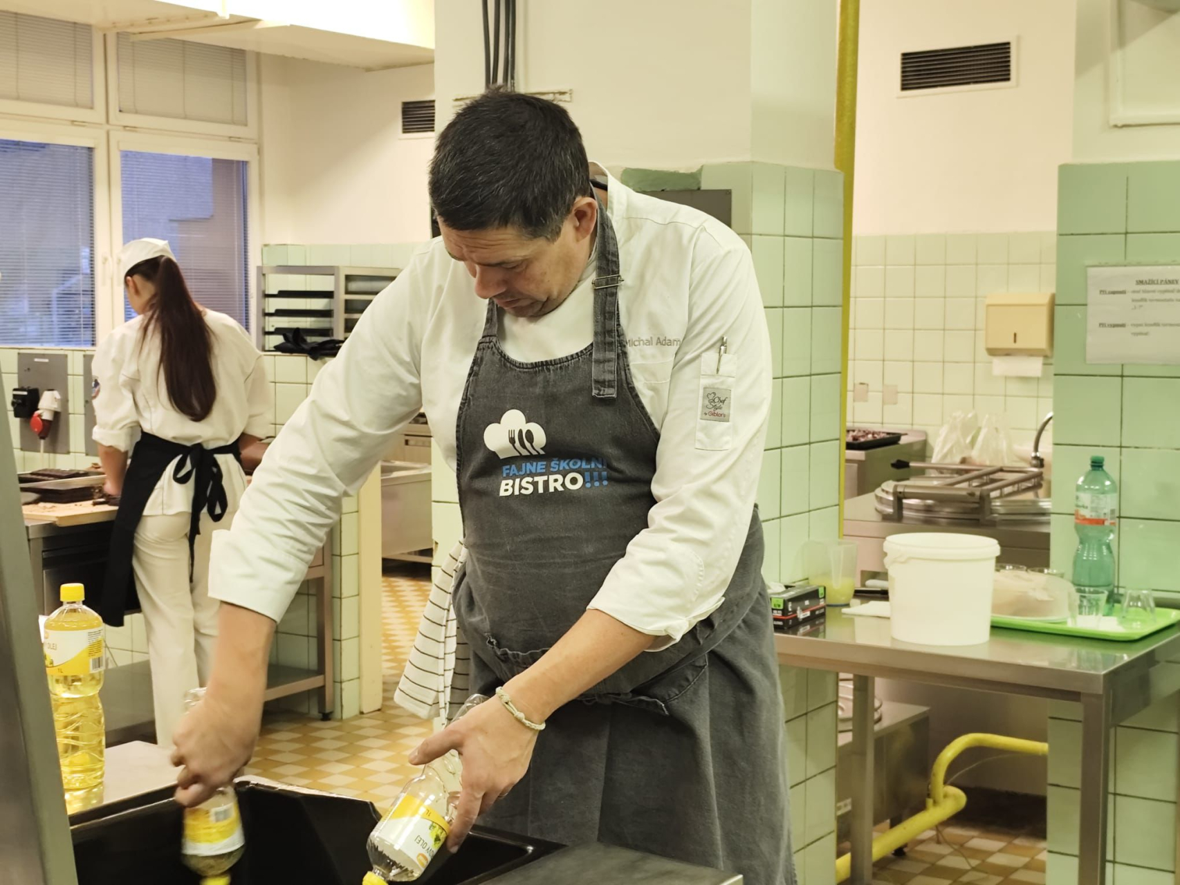V rámci projektu Fajne školní bistro realizované Magistrátem města Ostravy se naše paní kuchařky zúčastnily mentoringu pod vedením týmu profesionálů v čele s kuchařem Michalem Adamem a s pomocí studentů Hotelové školy, Ostrava.