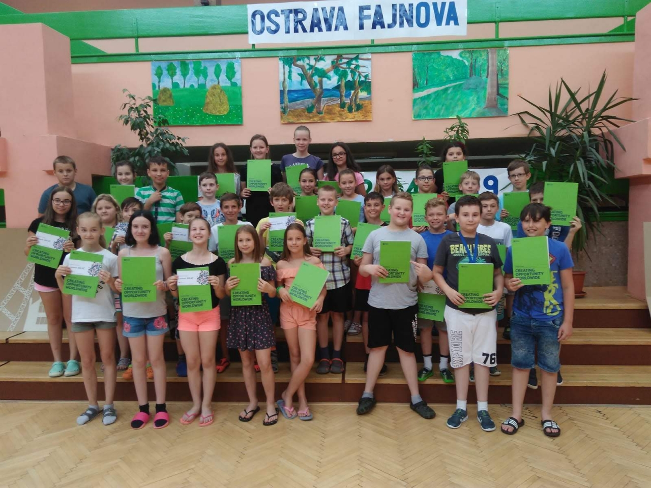 Dnešní den byl slavnostním ukončením naší celoroční práce. 38 žáků si tak mohlo převzít mezinárodní jazykový certifikát. Plný počet bodů získali následující žáci 4. tříd: Marek Foldyna, Barbora Foldynová, Petr Lembas, Samuel Nagy, David Poledník, Zuzana Safarjanová, Krasík Spasov, Eliška Turčíková, Jan Vrtaník, Markéta Chomová a Pavol Kminiak a tito žáci z 5. tříd: Dominika Buttová, Sarah Grednerová, Alex Malaczynski, Kryštof Mokryš, Emma Navrátilová a Antonín Pail.