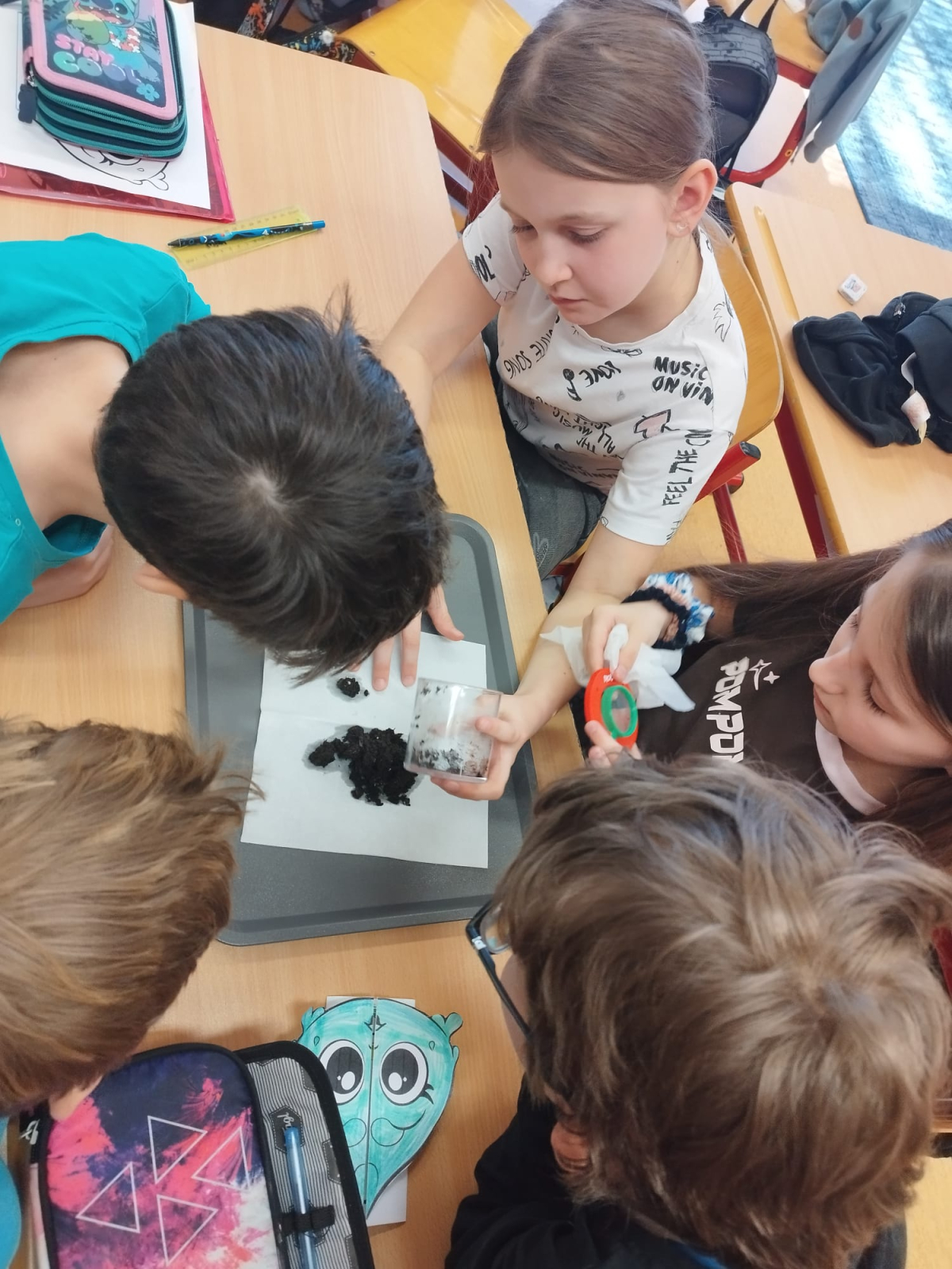 Poslední měsíc se z žáčků ze 3.C stali malí badatelé. Během hodin prvouky objevovali, zkoumali, pracovali na pokusech, filtrovali vodu. Zkoušeli odhadovat a hlavně se učili pracovat jako skutečný badatelský tým. A právě takové objevování nás baví nejvíc.