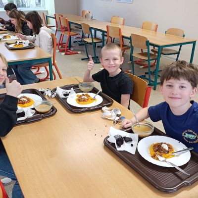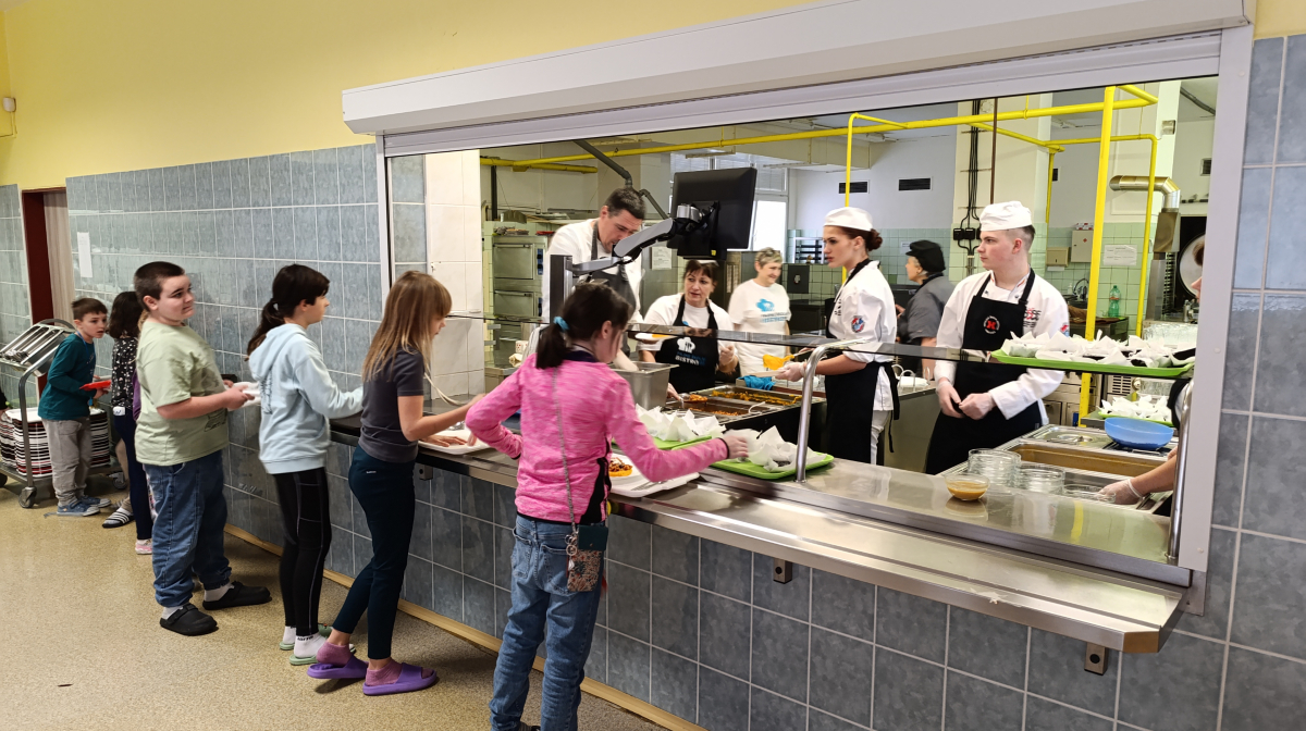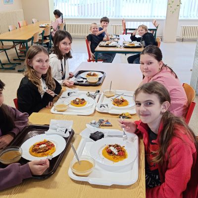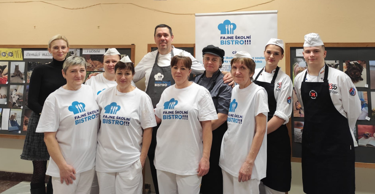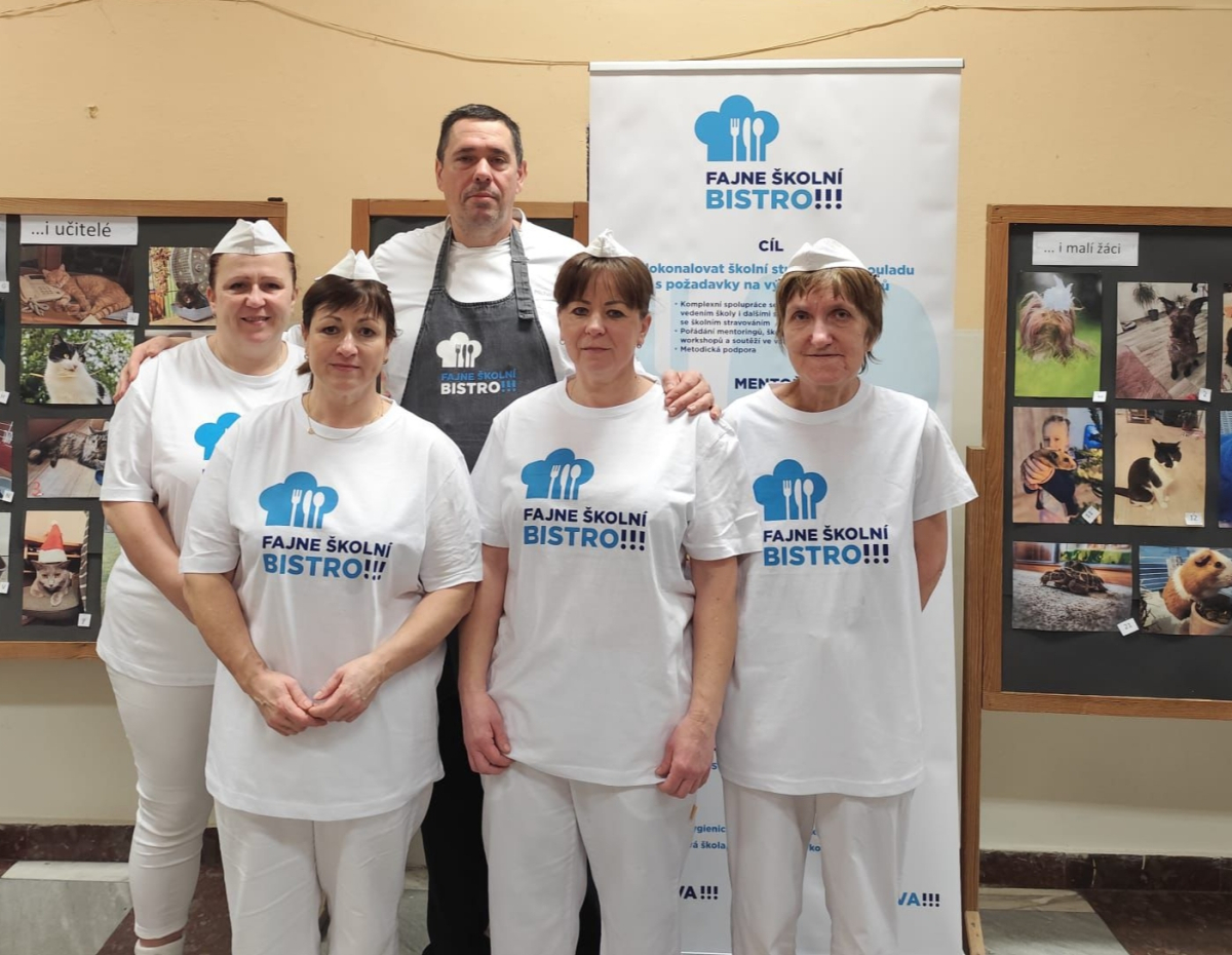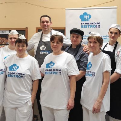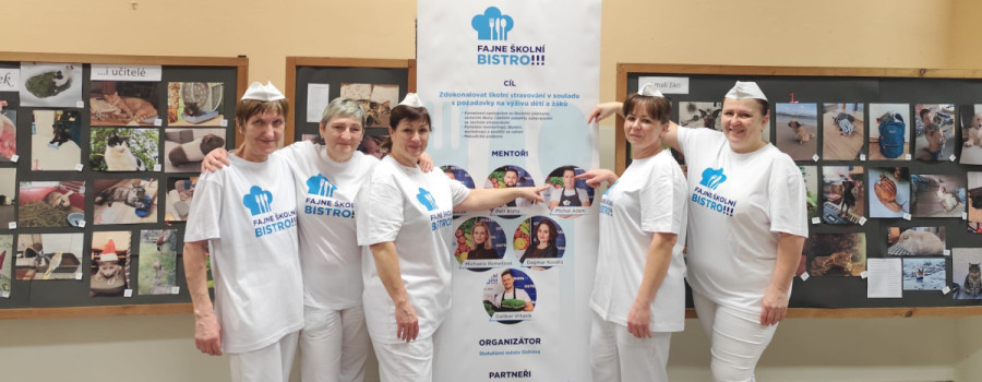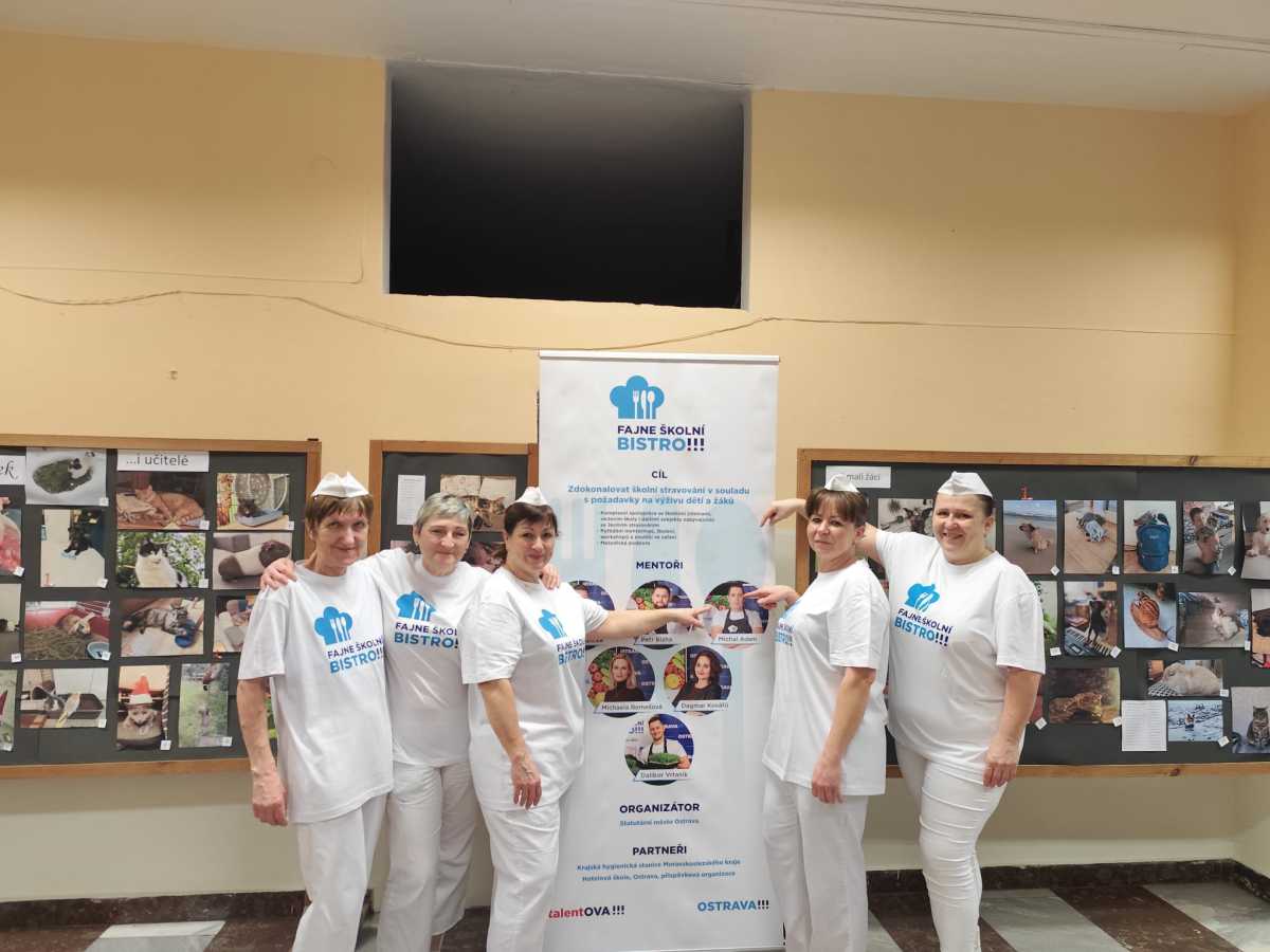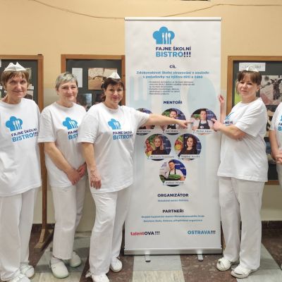 V rámci projektu Fajne školní bistro realizované Magistrátem města Ostravy se naše paní kuchařky zúčastnily mentoringu pod vedením týmu profesionálů v čele s kuchařem Michalem Adamem a s pomocí studentů Hotelové školy, Ostrava.