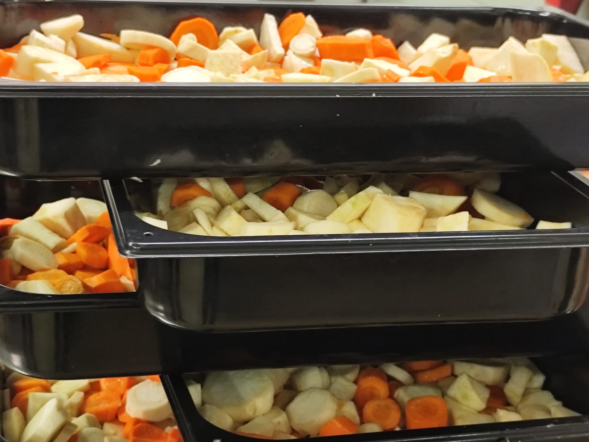 A co dobrého nám uvařili? Smetanovou polévku z pečené zeleniny, krůtí fajitas - mletou směs s drcenými rajčaty a červenou cibulí s dýňovým pyré. A jako sladkou tečku jsme si smlsli výborné a hlavně zdravé čokoládové brownies.