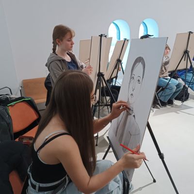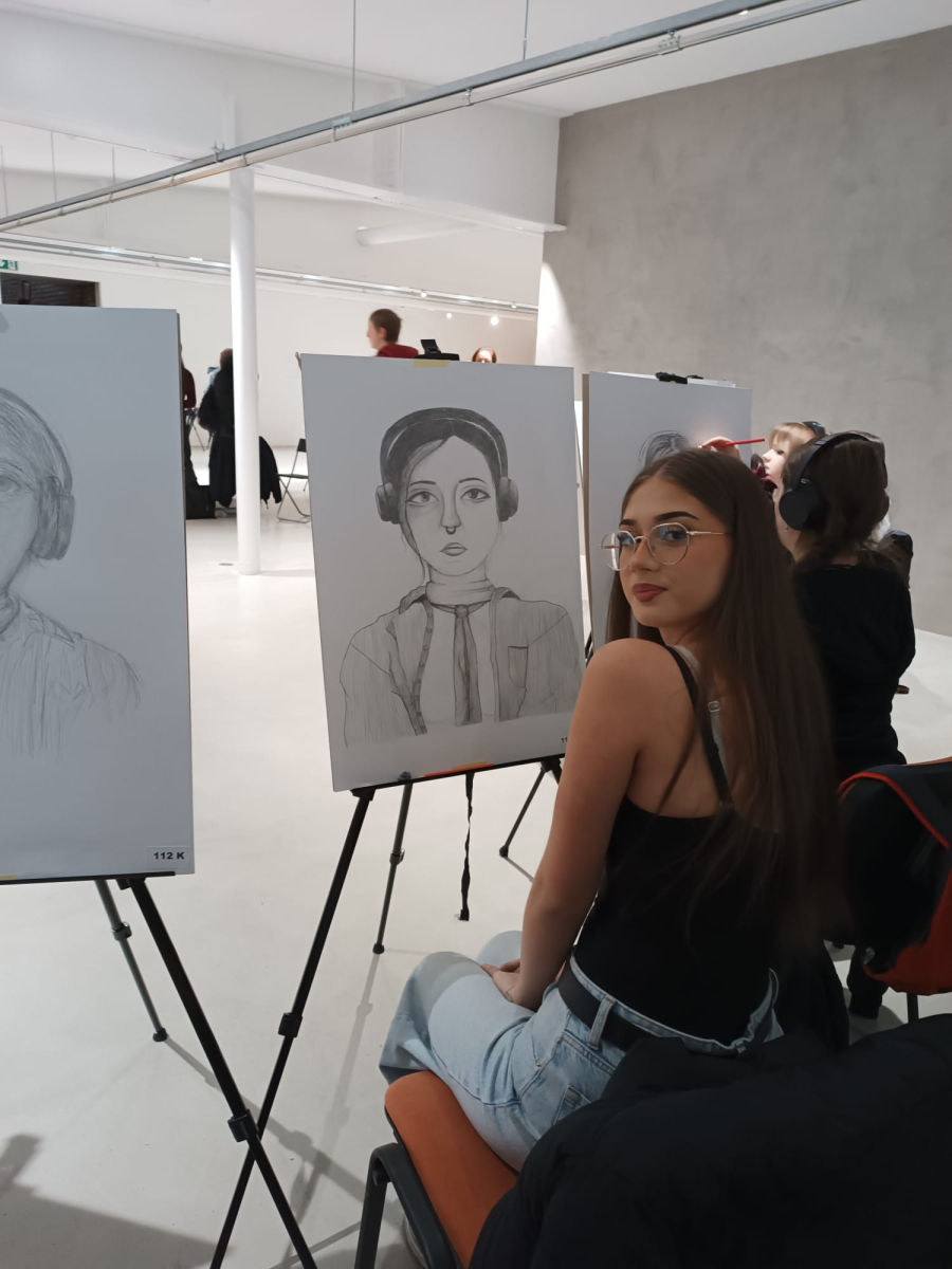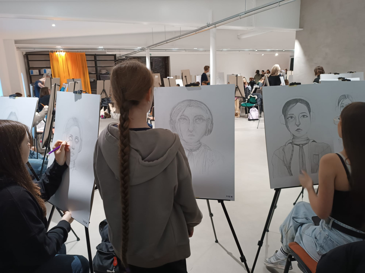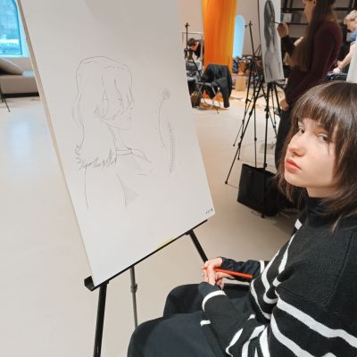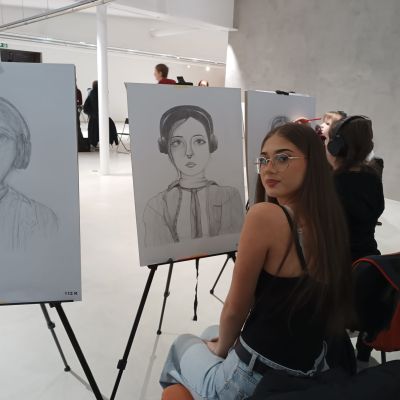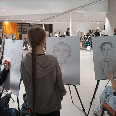 Soutěž "Kreslíř roku" - Laura, Nelly, Eliška, Marie kreslí portrét, Lilly maluje zátiší.