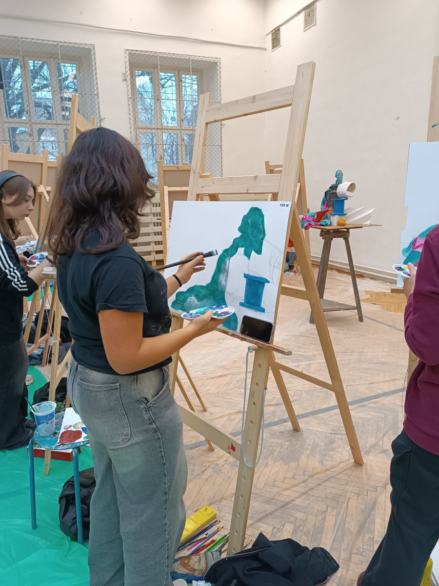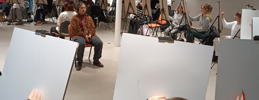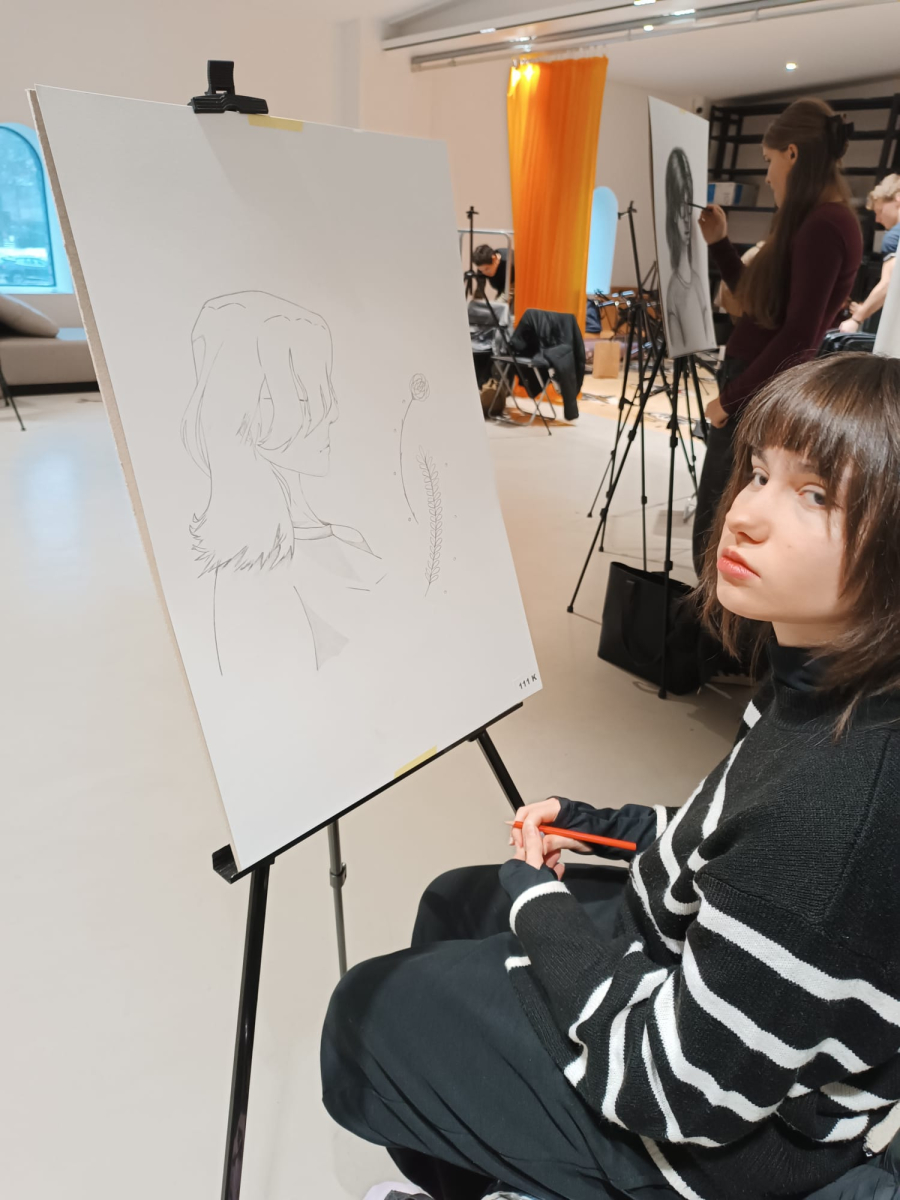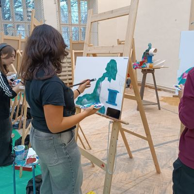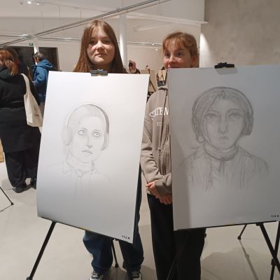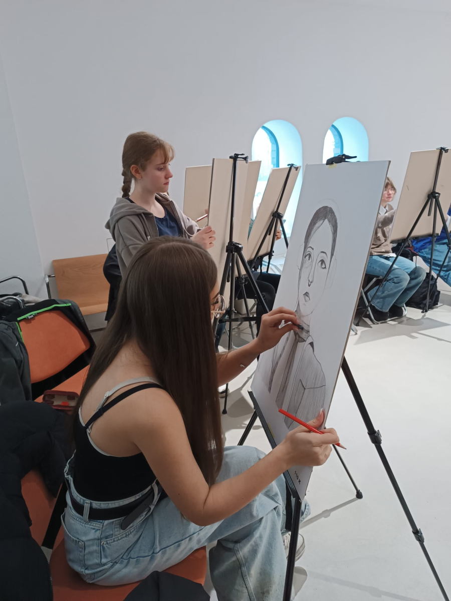Soutěž "Kreslíř roku" - Laura, Nelly, Eliška, Marie kreslí portrét, Lilly maluje zátiší.
