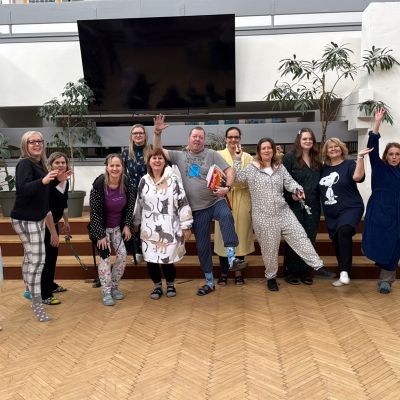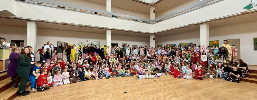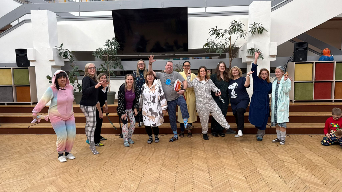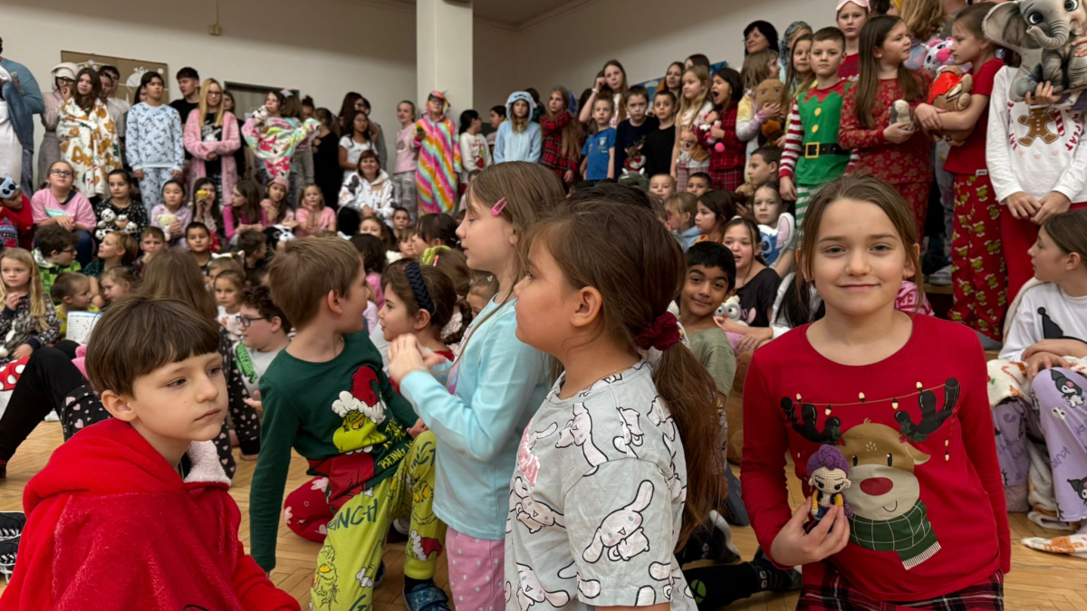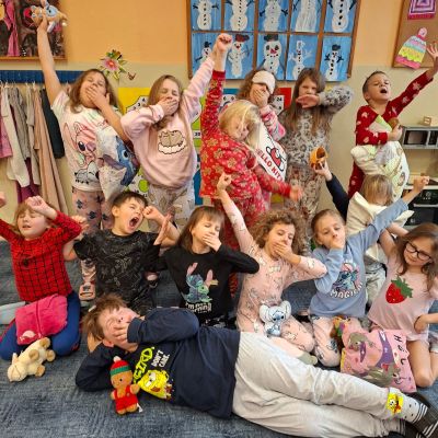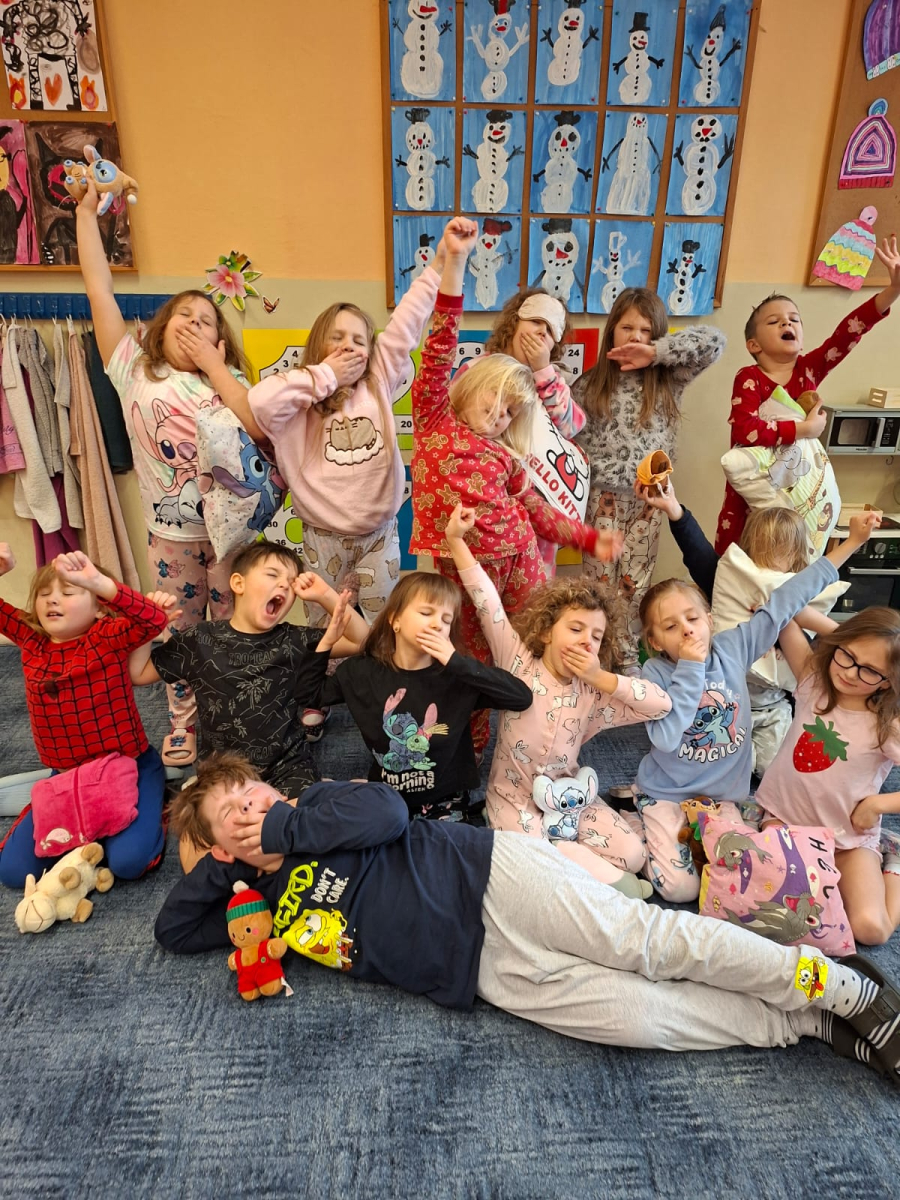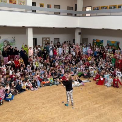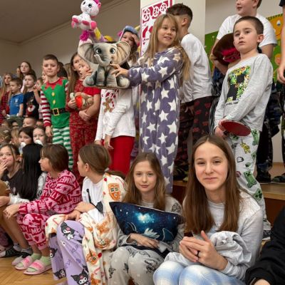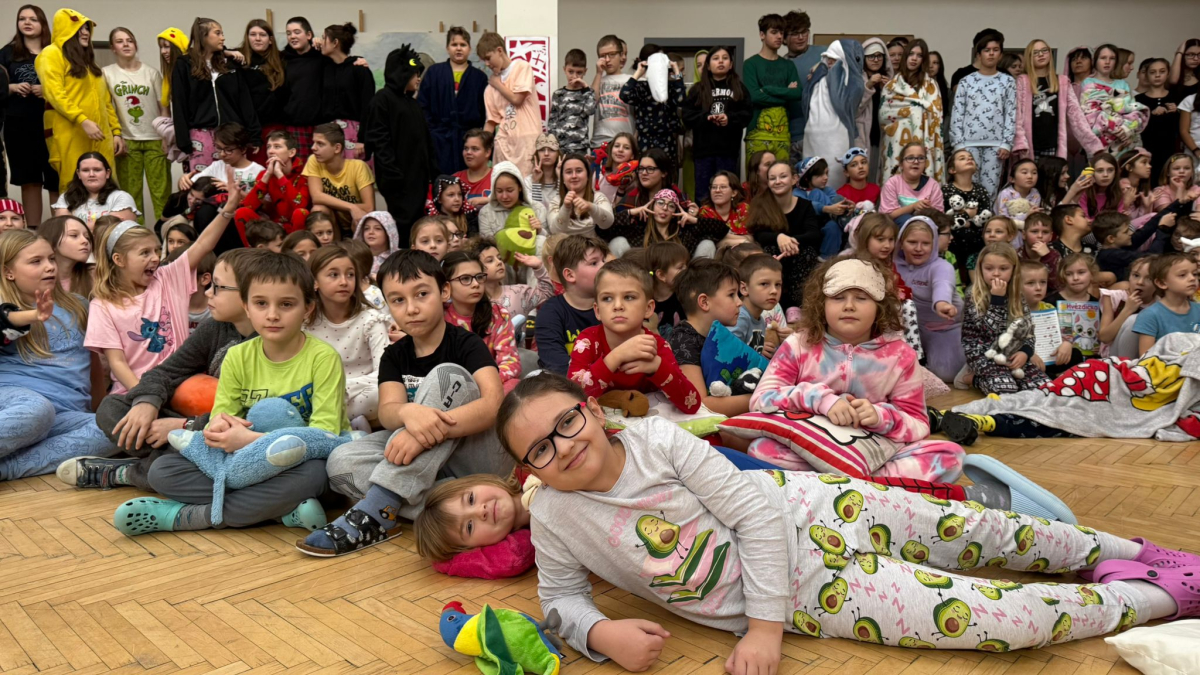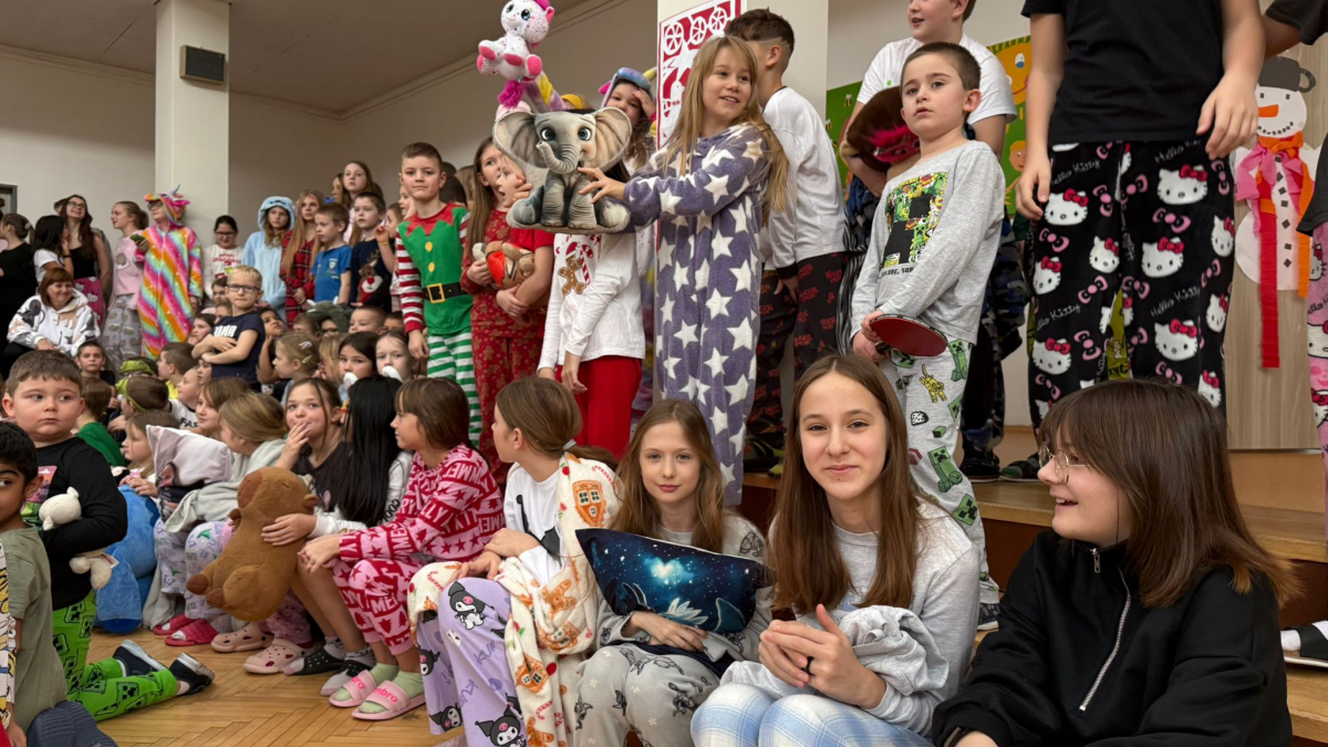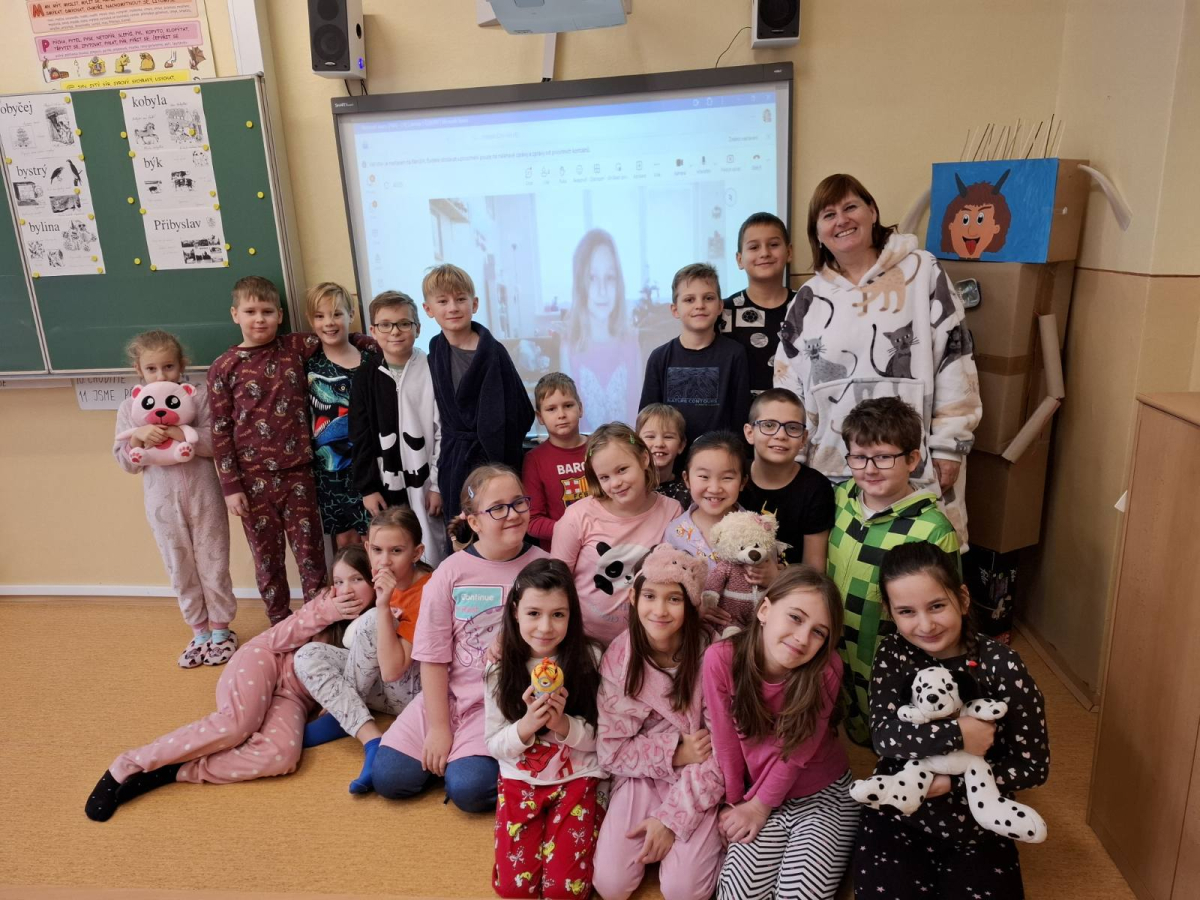 Jak nejlépe strávit školní den? No přece v pyžamu! A tak jsme si první školní pátek roku 2026 udělali radost, přinesli si deky, župany, overaly, plyšáky a další propriety, abychom se o velké přestávce sešli v aule, a že nás bylo, a udělali si jednu báječnou společnou fotografii.