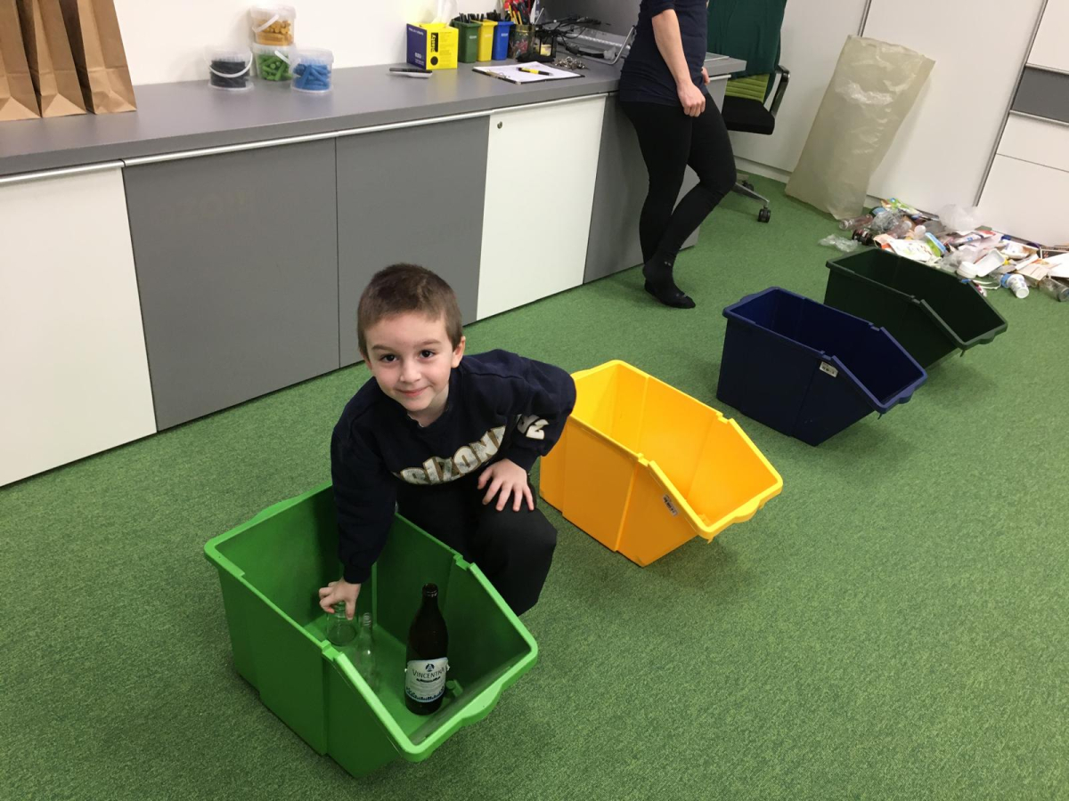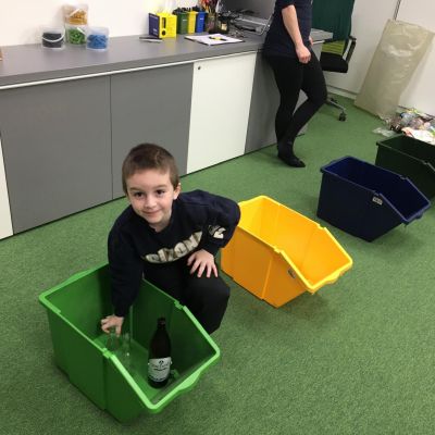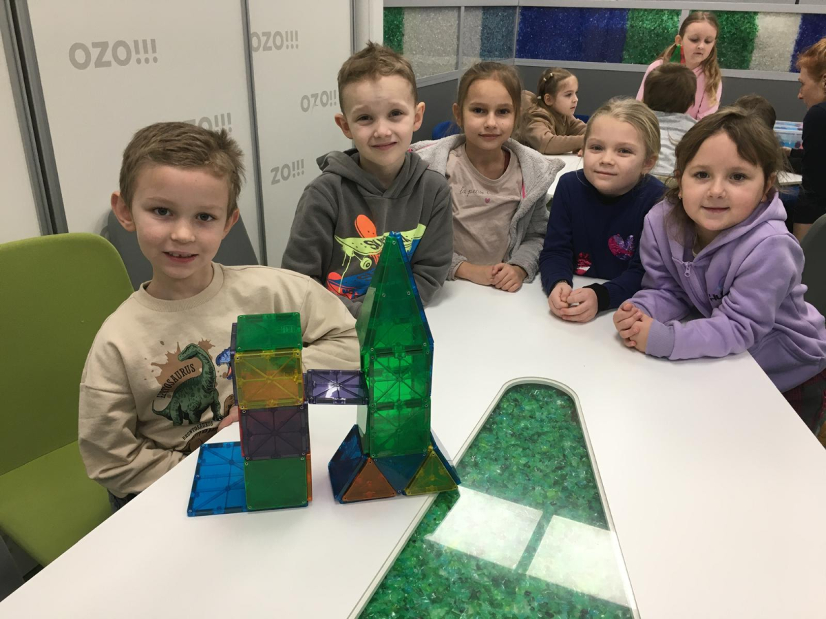 1.A už umí třídit odpad! Na výukovém programu v OZO se děti i obyvatelé planety PADYDO naučili správně třídit odpad. Už víme, co hodit do modré nebo žluté popelnice, i kde patří sklo a kam směsný odpad. Nejvíce ale všechny skupinky bavilo stavět svou raketu.