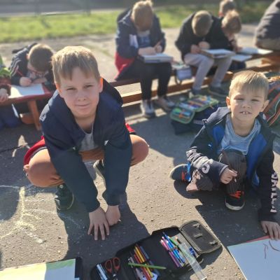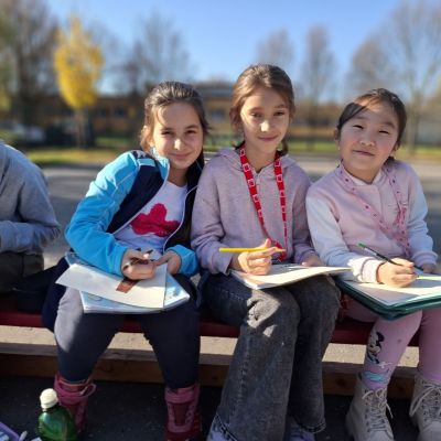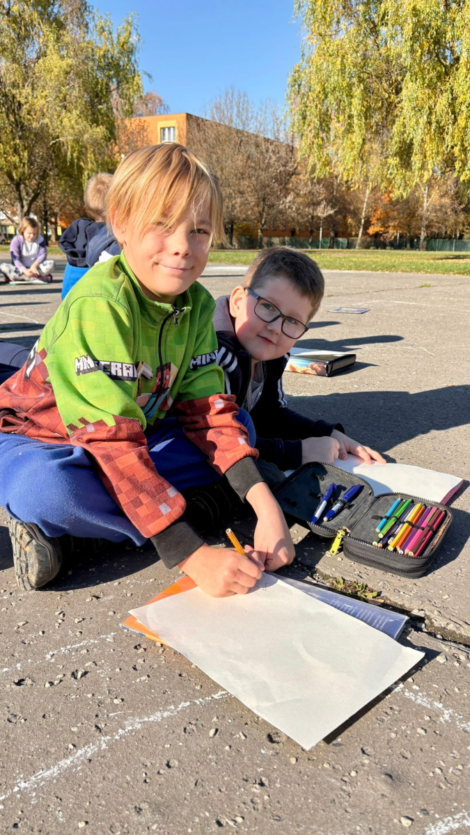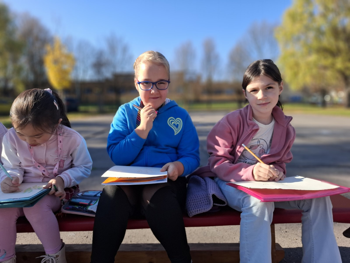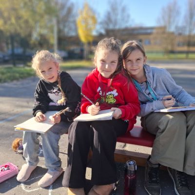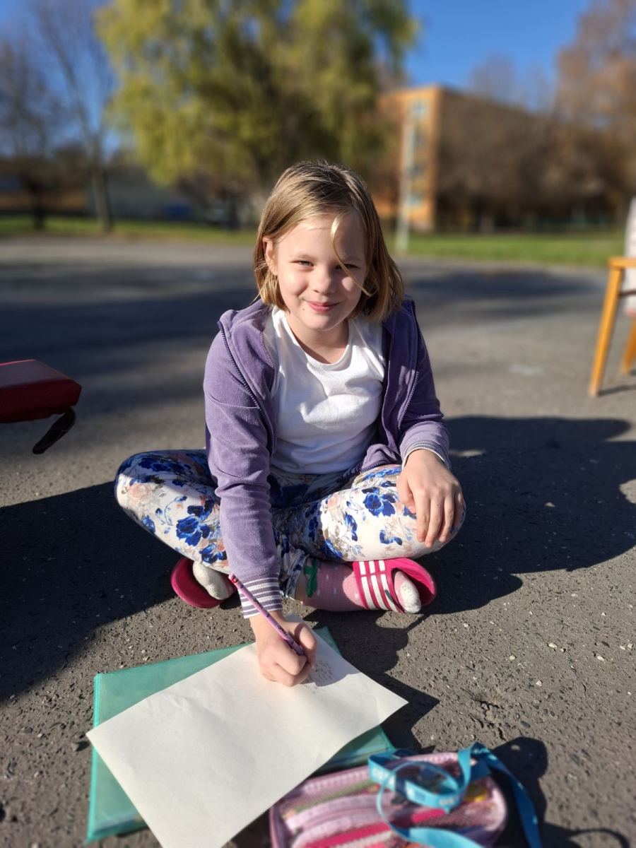 3.B využila krásného počasí a šli jsme se učit ven.