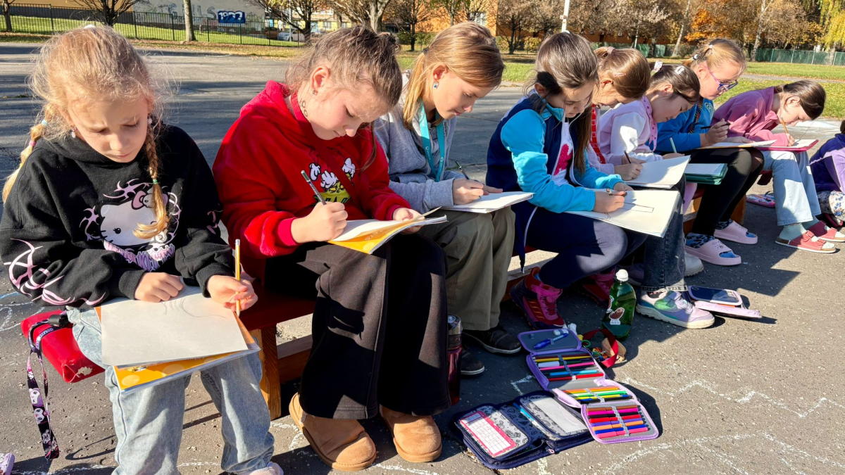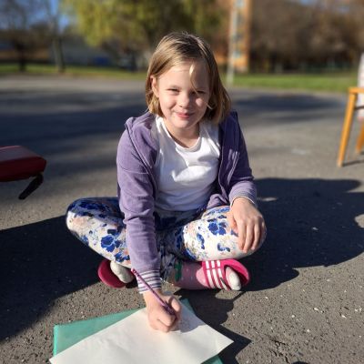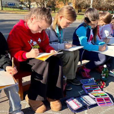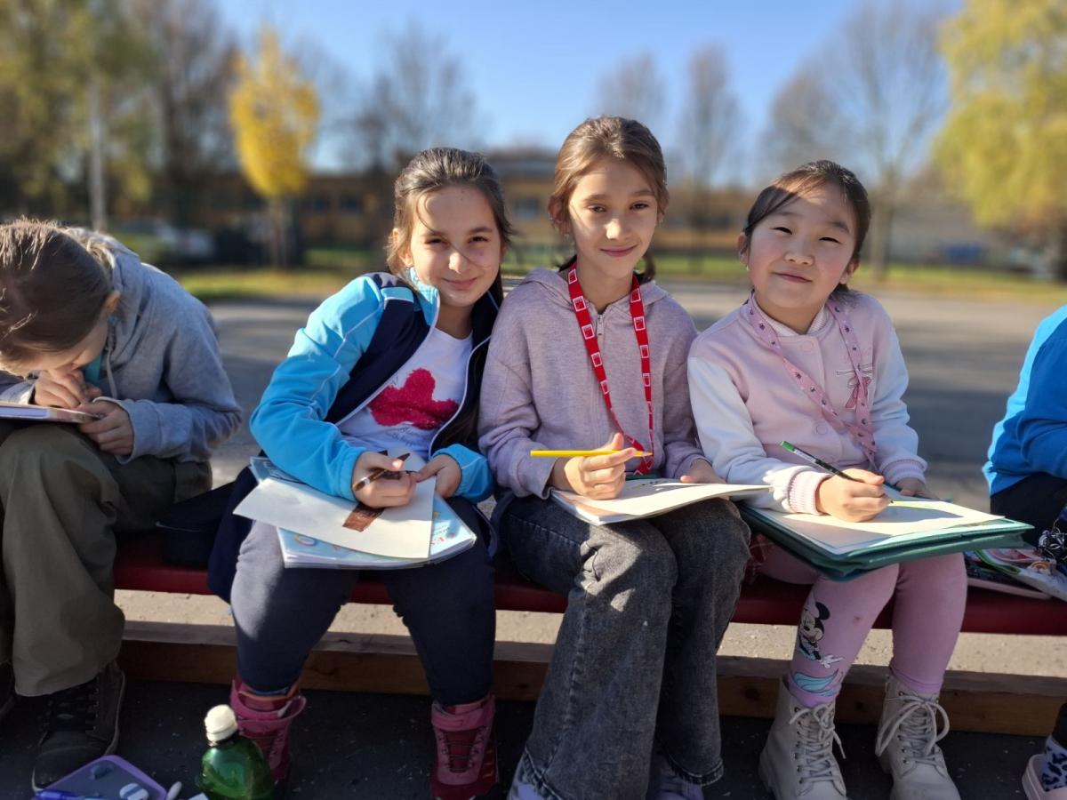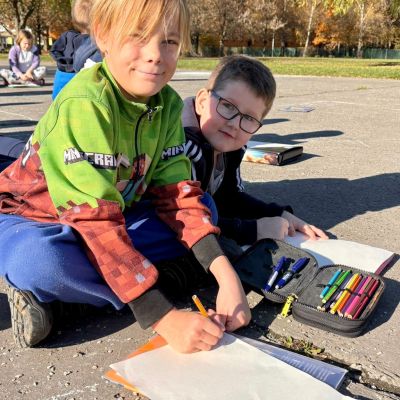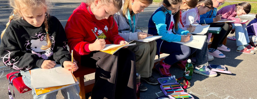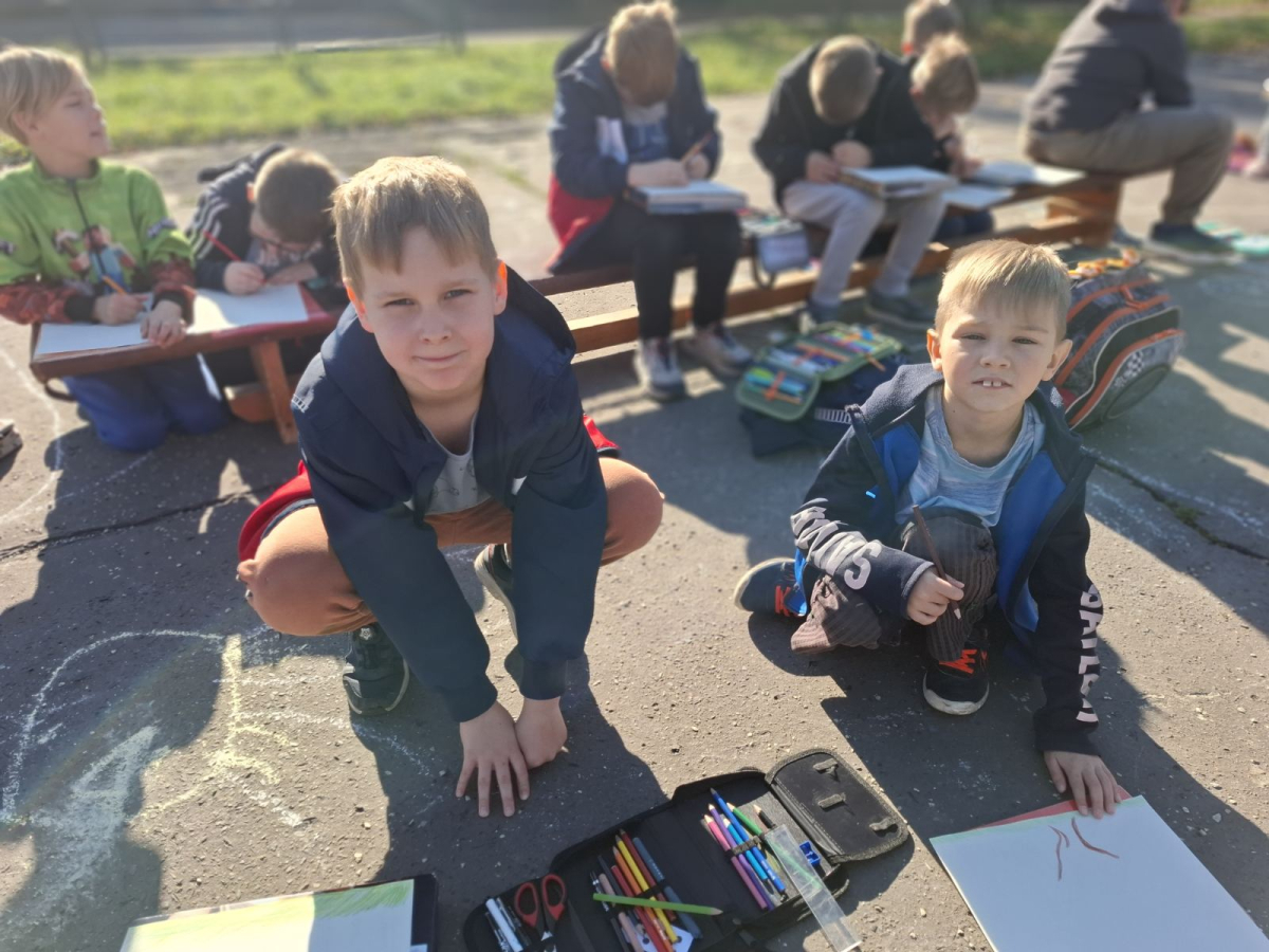 3.B využila krásného počasí a šli jsme se učit ven.