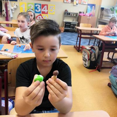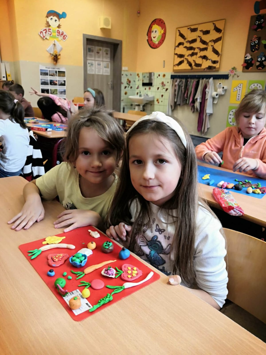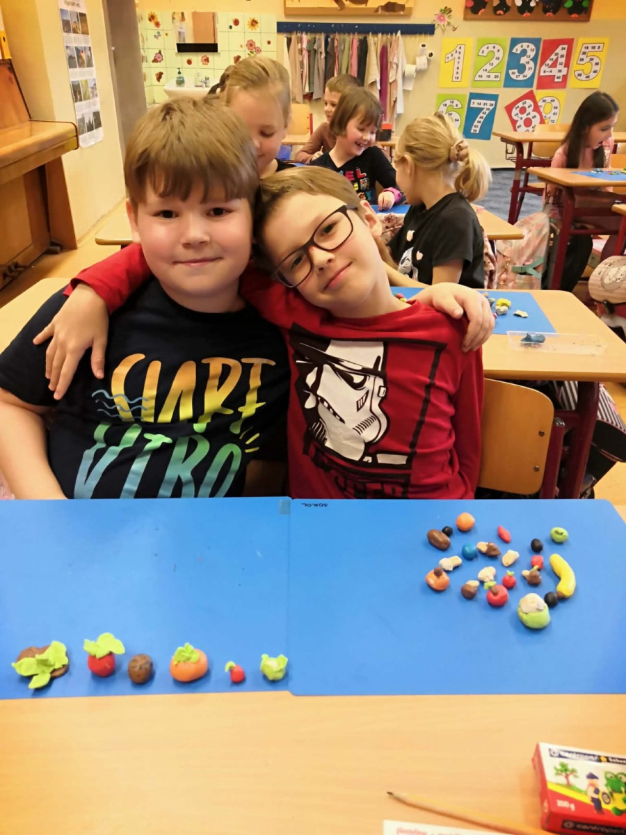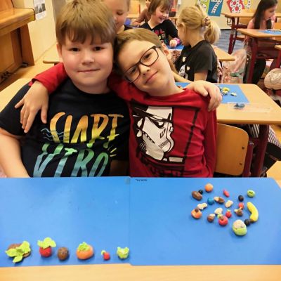 V lednu se v prvouce učíme o zdraví. Povídáme si o tom, jak si ho udržet a proč k němu patří i dobrá nálada. Podívejte se, jak si žáci 2.A při prvouce a pracovní činnosti hrají s vitamíny - ovoce a zeleninu nejen poznávají, ale také si je vyrábějí z modelíny.